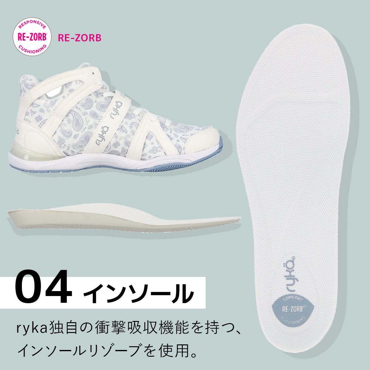 ライカ(ryka) テナシティー TENACITY レディース ダンスシューズ ホワイト/ペイズリー E1270M 1300