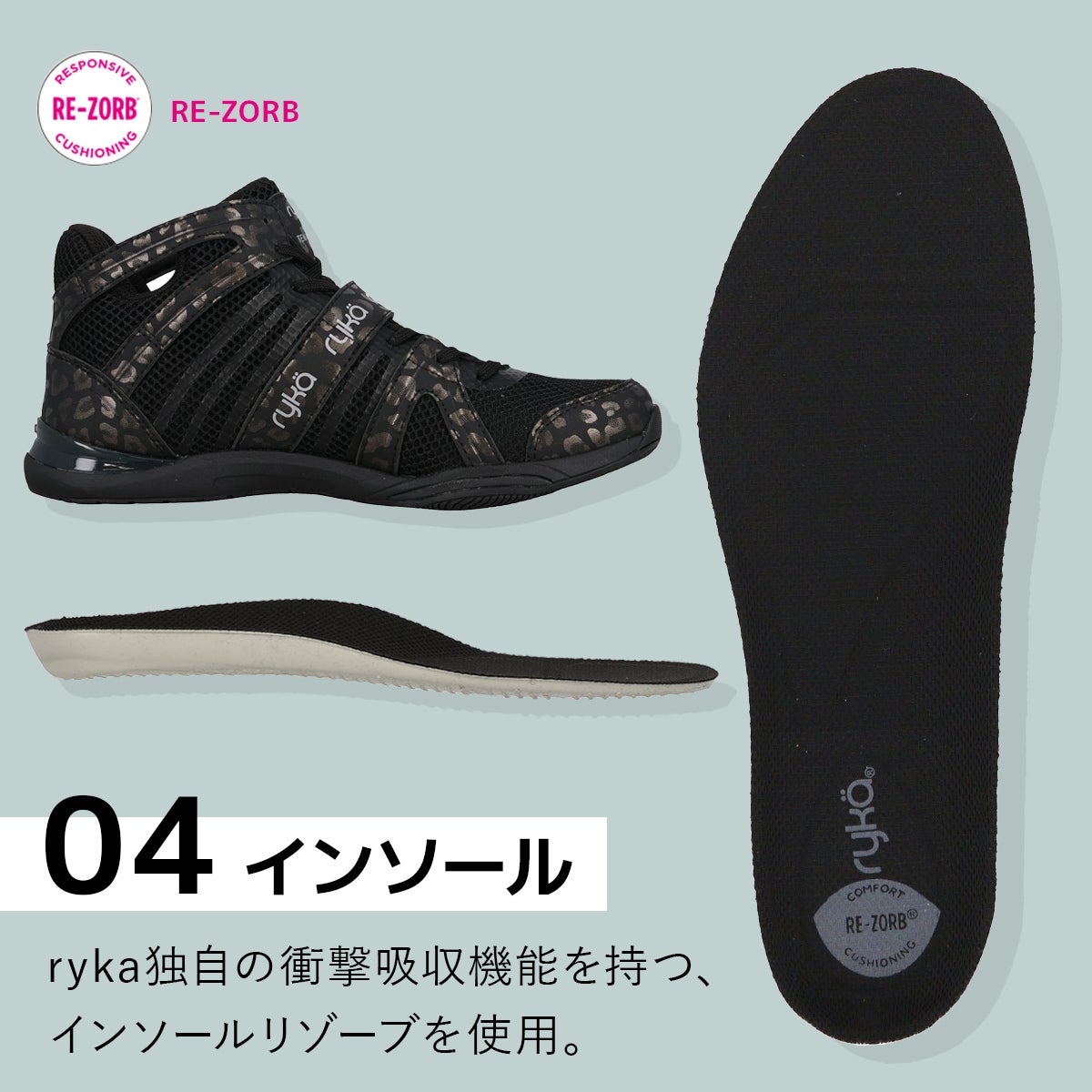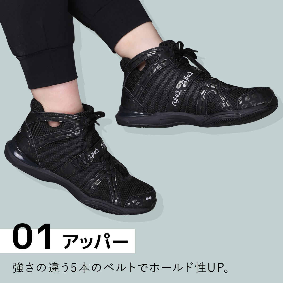 ライカ(ryka) テナシティー TENACITY レディース ダンスシューズ ブラック/レオパード E1270M 2077
