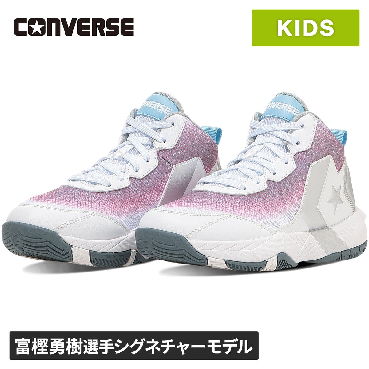 コンバース(CONVERSE) ヴィックスター MID VICSTAR MID キッズ バスケットボールシューズ ホワイト/ピンク/シルバー 33500482