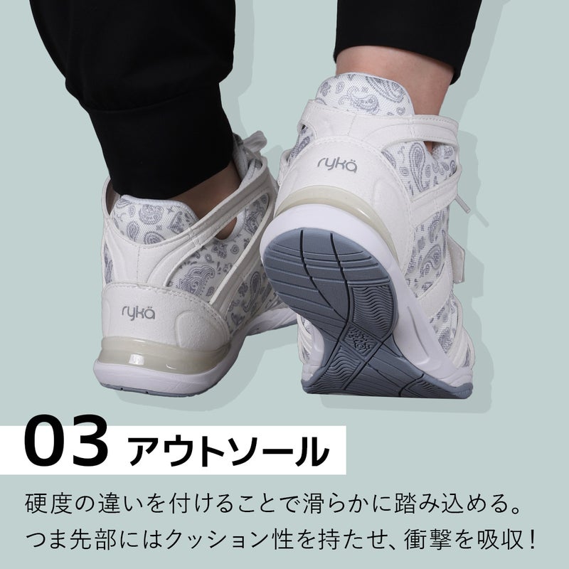 軽量EVAを搭載し、踵部分にはI.H.C.プレートを搭載し横の動きの安定感をサポート。