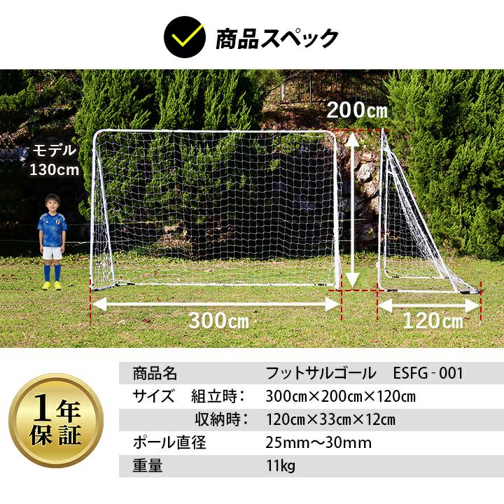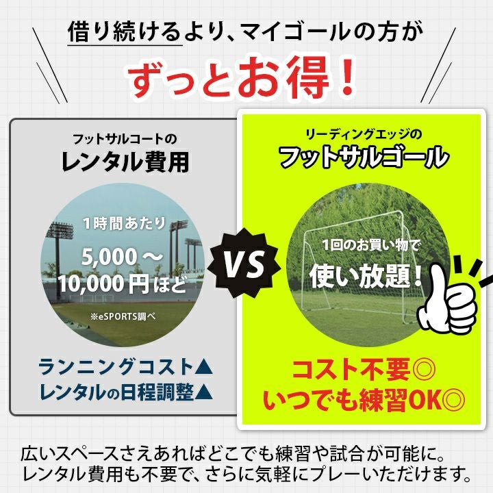 他の画像を見る 即納 LINE限定10%OFFクーポン 3/7-9 リーディングエッジ(LEADING EDGE) 屋内 屋外兼用 フットサルゴール 3m×2m 公式サイズ キャリーバッグ&土嚢袋付き ESFG-001 販売価格 ¥ 12,800 税込 %OFF 本格的なフットサルがどこでも楽しめるポータブルフットサルゴール! 詳細を見る お気に入り登録