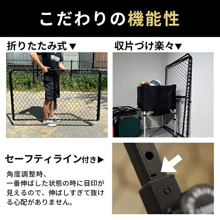 面の広さが150cmのワイドサイズにグレードアップされており、ボールを当てやすく、親子やチームでの使用にも適しています。