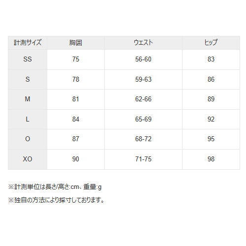 XO:胸囲90、ウエスト71-75、ヒップ98