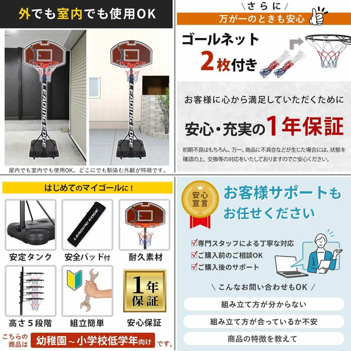 リーディングエッジ(LEADING EDGE) 家庭用 屋外 屋内 キッズバスケットゴール230 LE-BS230 & シュートトレーニングボール LES-STB 計2点セット