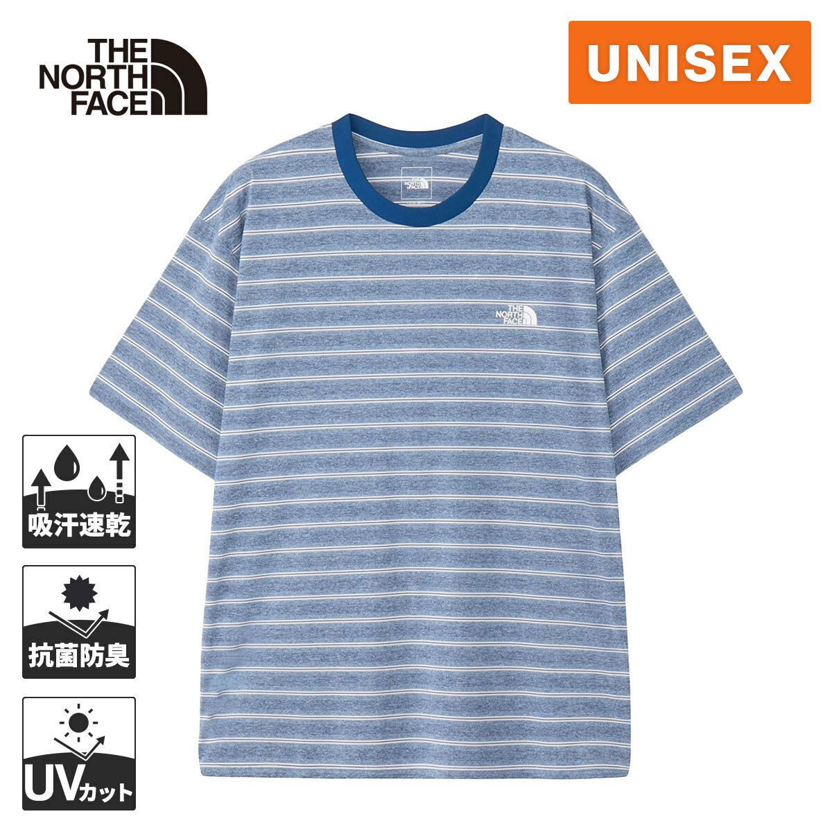 ザ・ノース・フェイス(ノースフェイス) ショートスリーブフリーランボーダークルー S/S Free Run Border Crew メンズ レディース ランニングウェア シャツ マウンテンブルー NT12591 OB