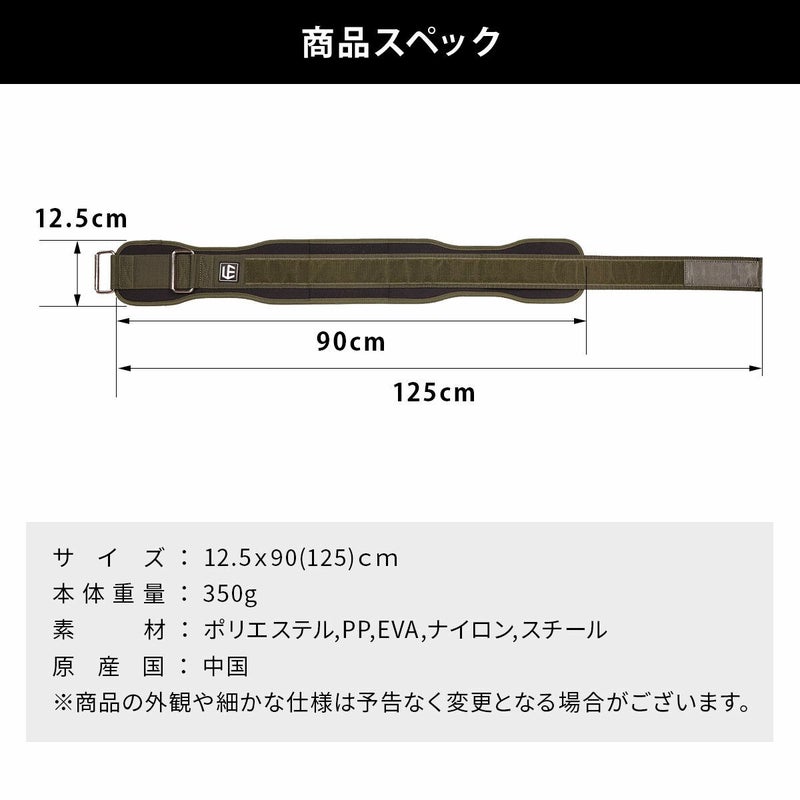 デッドリフト、バーベルスクワット、ベンチプレス、ショルダープレス等の各種高重量運動にご利用いただけ、体幹と腰をサポートします。