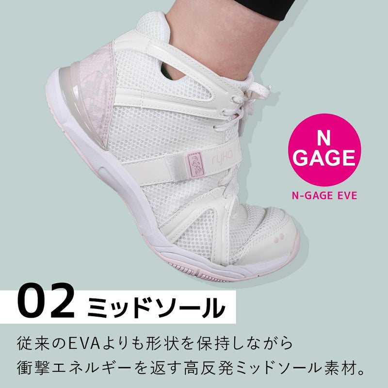 N-GAGE・二重のミッドソールでより、衝撃をより吸収しダンスの動きをサポート。