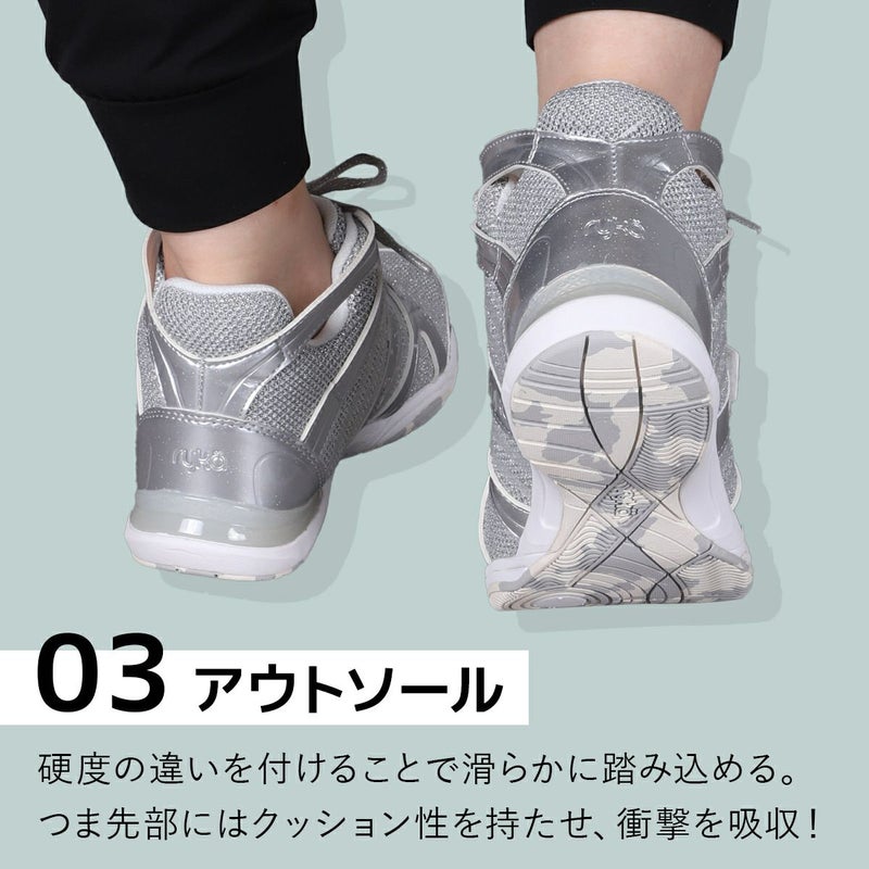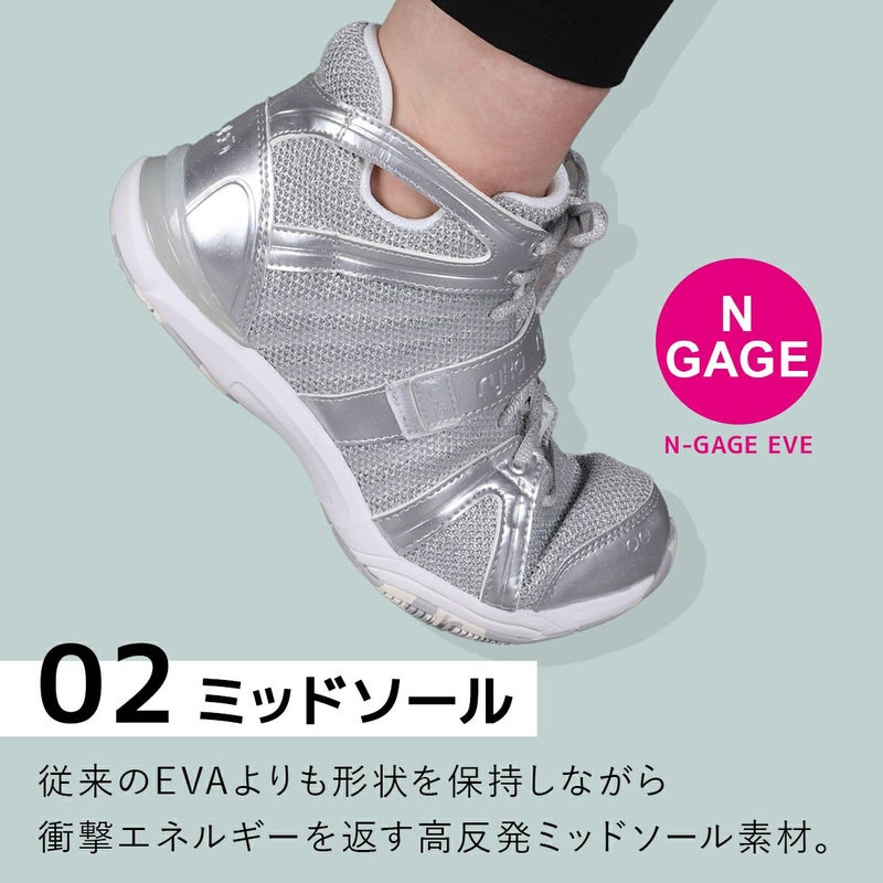 N-GAGE・二重のミッドソールでより、衝撃をより吸収しダンスの動きをサポート。