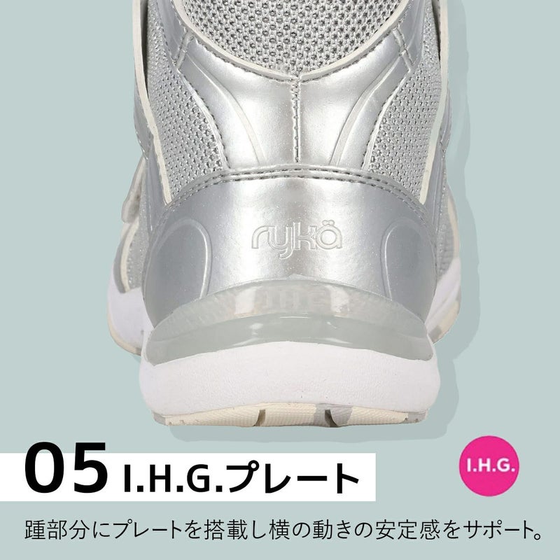 軽量EVAを搭載し、踵部分にはI.H.C.プレートを搭載し横の動きの安定感をサポート。