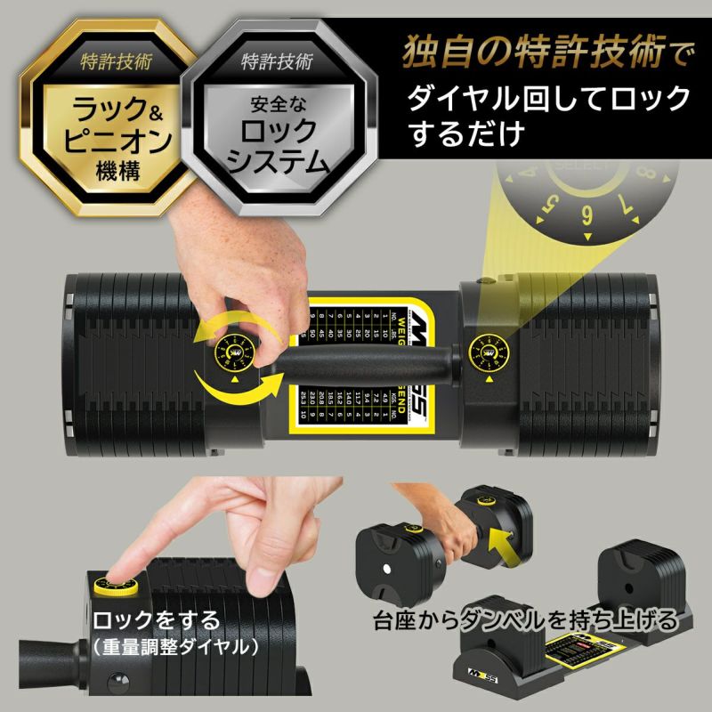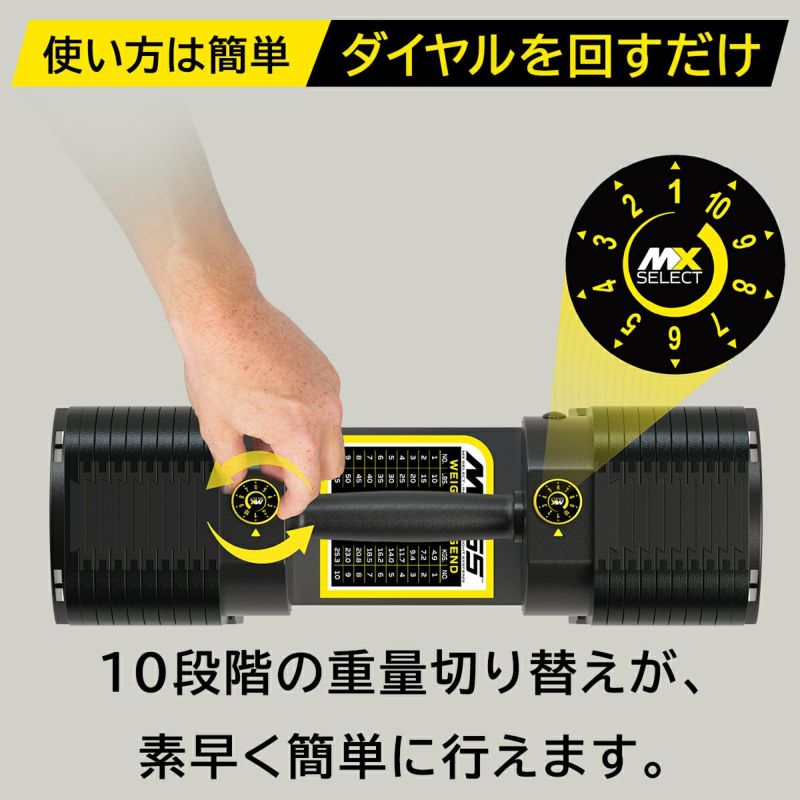 MX55 Rapid Change Dumbbell Systemは、MX SELECT独自の特許取得済みラック&ピニオン設計と、安全なPositive Lock Systemを採用しています。