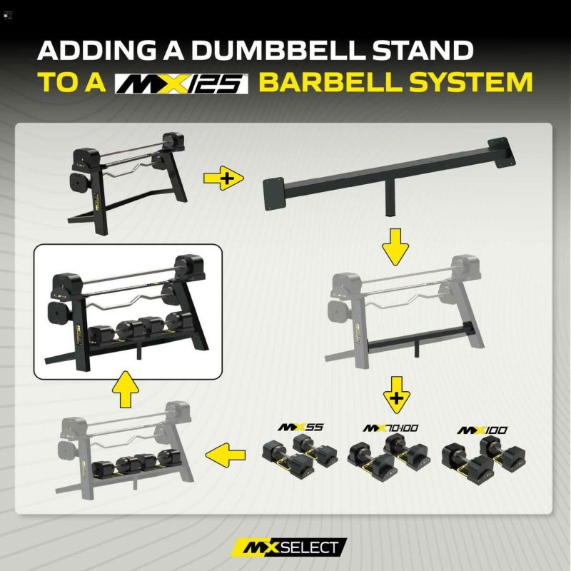 これを取り付けることで、可変式ダンベルを、可変式バーベルのスタンドへ一体化させることが可能になります。