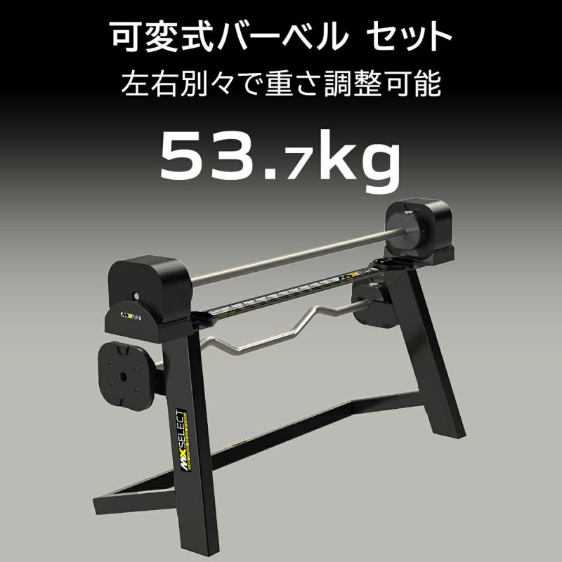 こちらの商品は可変式(13.1~53.7kg)バーベルです。