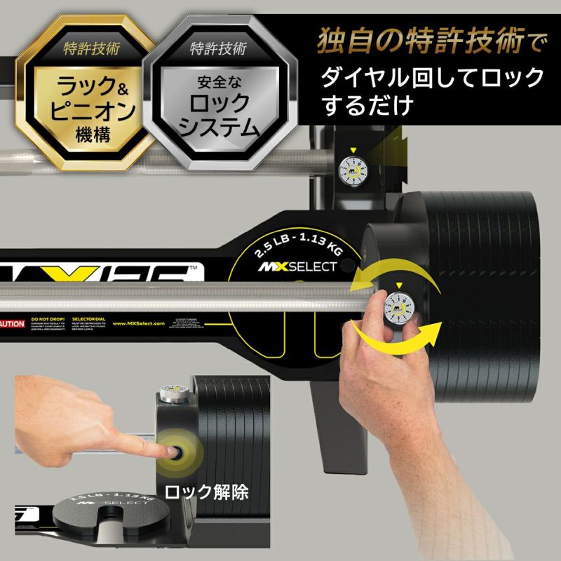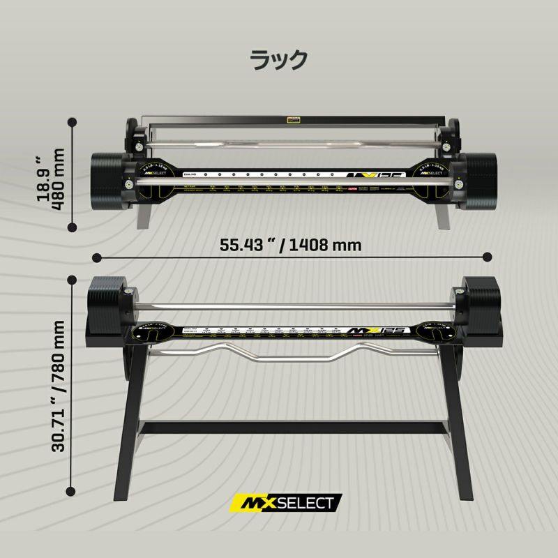MX125 Rapid Change Barbell Systemは、MX SELECT独自の特許取得済みラック&ピニオン設計と、確実な固定を実現するPositive Lock Systemを採用しています。