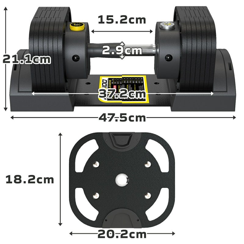 ダンベルの長さと最大重量37.2cm-最大32.2kg