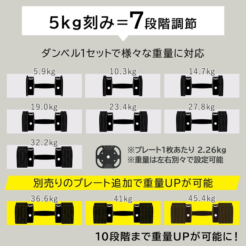 こちらは5.9kg-32.2kgの可変式ダンベルとなります。
