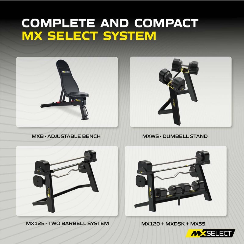 MX70-100 Rapid Change Dumbbell Systemは、MX SELECT独自の特許取得済みラック&ピニオン設計と、安全なPositive Lock Systemを採用しています。