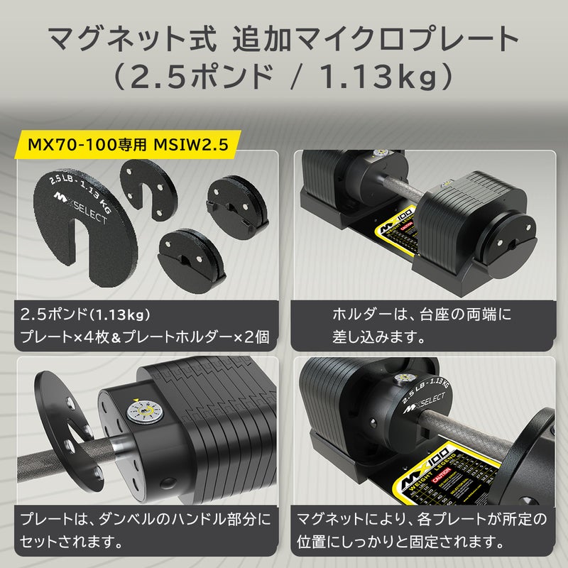 ・MX70、MX100 可変式ダンベルに適合。
