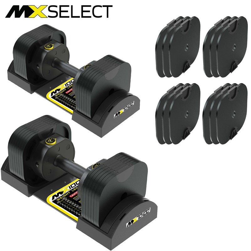 エムエックスセレクト(MX SELECT) MX EVO ダンベルセット 可変式ダンベル ラバーハンドル 2点セット & アドオンプレート アップグレードキット