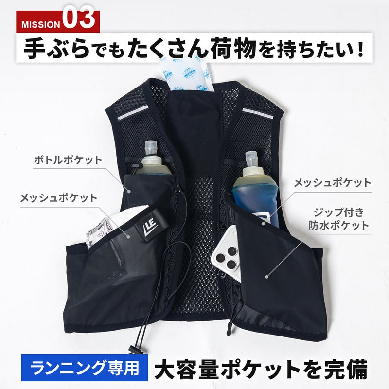 冷却機能、走行快適性、収納力を最適なバランスで融合させた、夏用ランニングベスト。