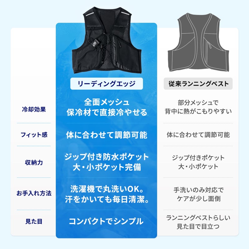 夏のランニングの暑さ対策に特化した、リーディングエッジの冷却アイスベスト。