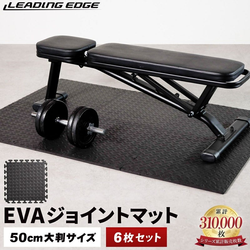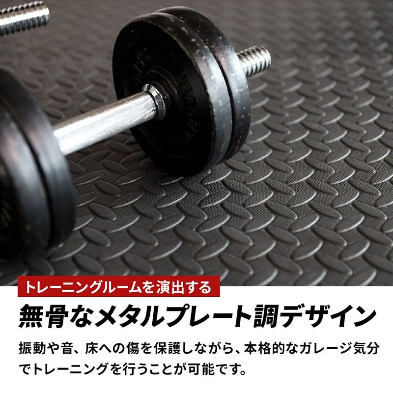 重量のあるトレーニング器具の使用にも対応する、少し硬めのEVA/PE素材を使用しています。ただし、長時間放置すると圧痕が残る可能性がございます。