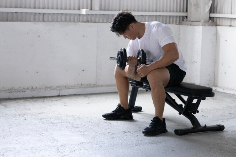 トレーニングベンチを用意すると、ダンベルを使用したトレーニングのバリエーションが増えるため、非常に効果的です。