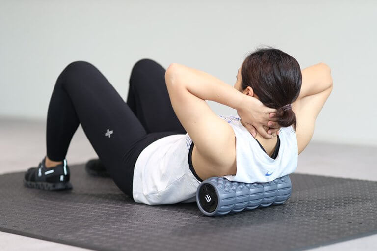 トレーニングマットは衝撃を吸収する素材でできているため、床に手足をついて行うトレーニングのときには身体への負担を軽減します。