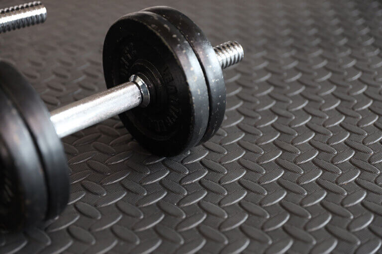 ダンベルやバーベルなどの器具とフローリングなどの床との摩擦から生じる傷や凹みの予防目的で利用されます。