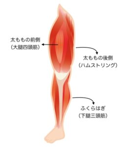 太ももの前、後ろ、ふくらはぎ、それぞれの筋肉の役割だけ押さえておきましょう。
