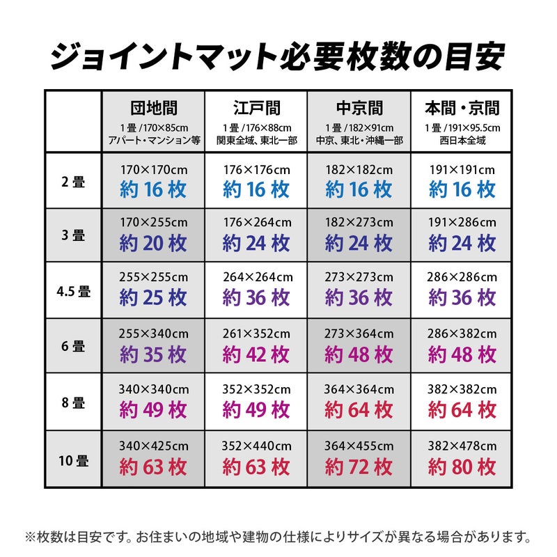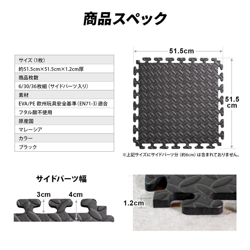 1枚あたりのサイズは約縦51.5cm×横51.5cm、厚みは1.2cmです。