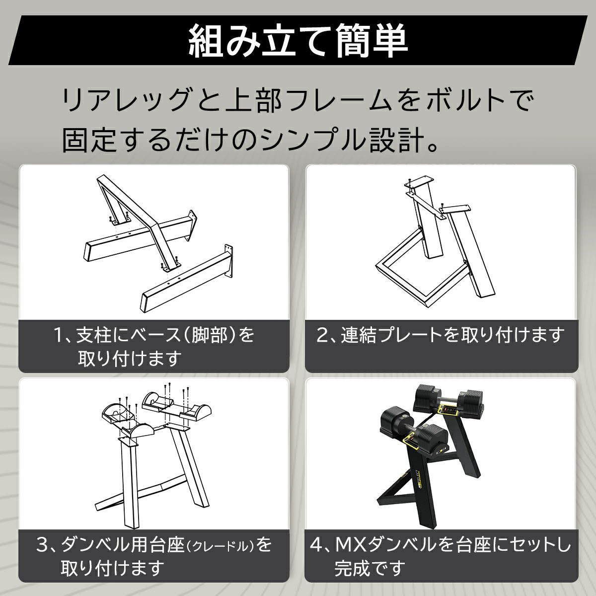 他の画像を見る 即納 エムエックスセレクト(MX SELECT) MX EVO ダンベルスタンドオプション 【MX125専用】 MX125DSK 販売価格 ¥ 8,800 税込 %OFF 詳細を見る お気に入り登録