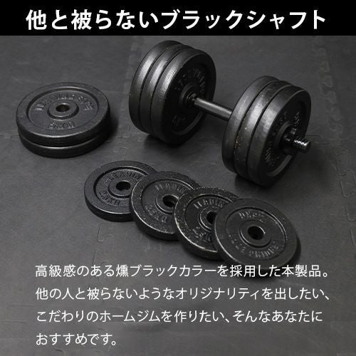 「燻-ibushi」と呼ばれる独特なブラックカラーが特徴のダンベルシャフトです。46cmのロングタイプで、汎用性の高い28mm径(標準規格)を採用しています。