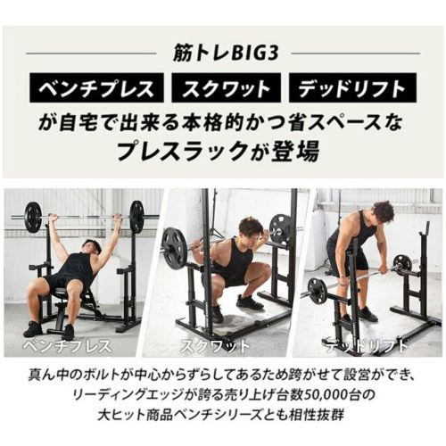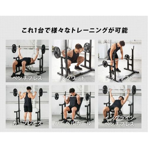 ・これひとつでベンチプレス、スクワット、デッドリフト、バーベルカーフレイズ、シーテッドバーベルカール等のさまざまなトレーニングに対応。