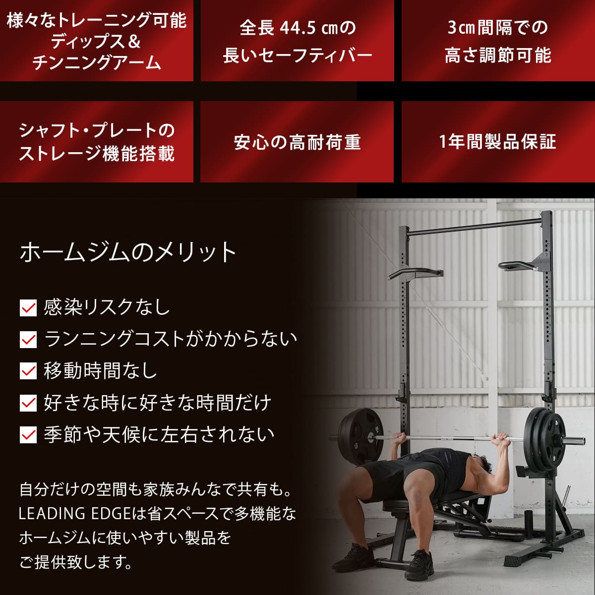 他の画像を見る 即納 リーディングエッジ(LEADING EDGE) [訳あり] アジャスタブルベンチ 限定カラー トレーニングベンチ マットブラック LE-B100R-T 販売価格 ¥ 31,980 税込 %OFF 大好評のLEADING EDGEハイグレードシリーズからすべてを備えた最上位モデルが登場! 詳細を見る お気に入り登録
