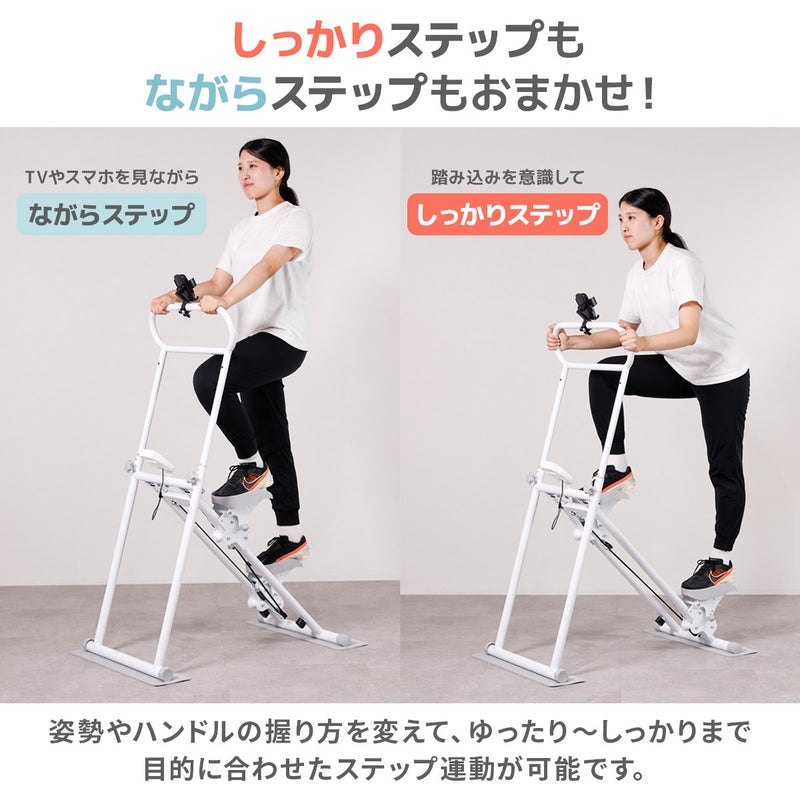 視線を外しても安心なハンドルと、スマホホルダー付きだから、あなたの「ながら時間」がそのままトレーニングタイムに。