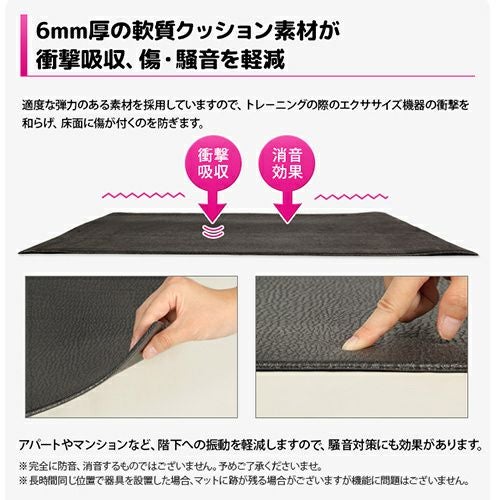 6mm厚の軟質PVC素材が運動機器をしっかり固定、床面への衝撃やキズを軽減します。