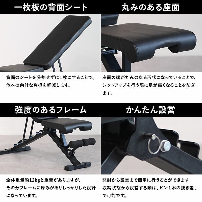 ・安心の耐荷重120kg(使用ダンベルの限度重量 片手15kgまで)。
