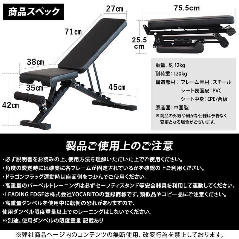 リーディングエッジ LEADING EDGE LETR-BEN 送料無料 LEBNC トレーニングベンチ ベンチ 折りたたみ式 インクライン デクライン ダンベル トレーニング器具 筋トレ