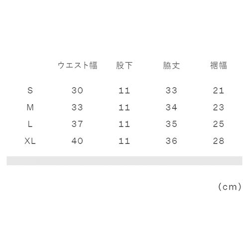 実寸サイズ(cm)S:ウエスト幅30、股下11、脇丈33、裾幅21