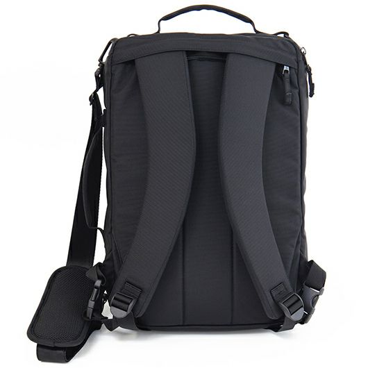 また、バックパックで使用する際のショルダーハーネスは3WAYバッグにしては幅広で厚く作られているので、中身が重くなっても、体への負担を軽減してくれます。