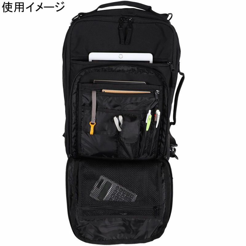 コンパクトな見た目ながらも収納力抜群で、メイン収納の他に、外からアクセス可能なマイクロフリースを使ったPCポケットやタブレットに最適なマイクロフリースを使ったファスナーポケット、オーガナイザーが使いやすいサブポケットなど、収納が多彩です。