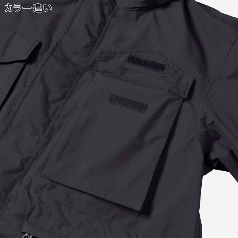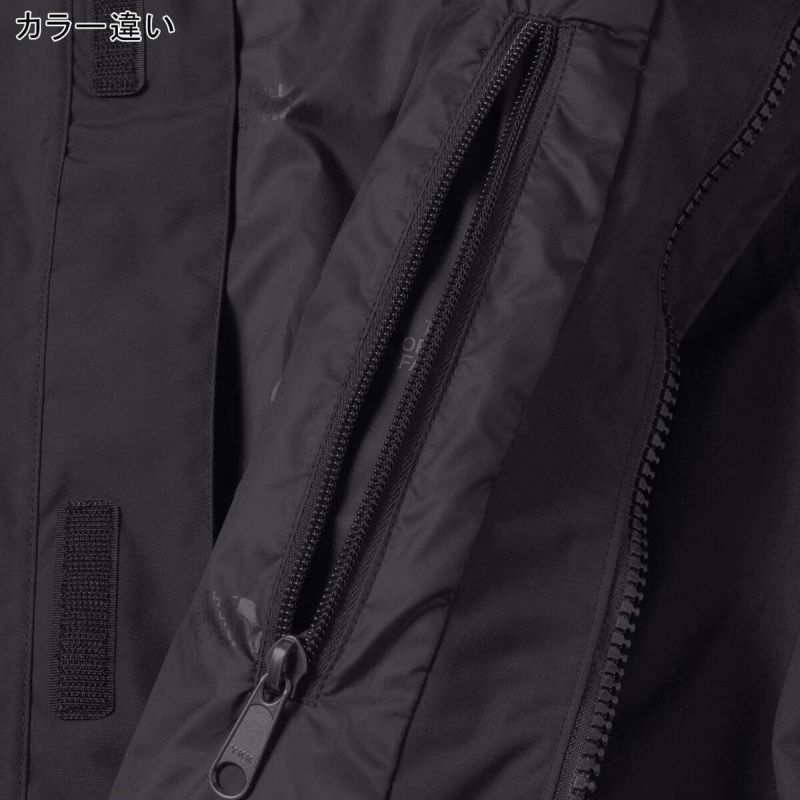 裾とウエストに調整可能なアジャスター付きで、袖は面ファスナーでフィット感の調節が可能。