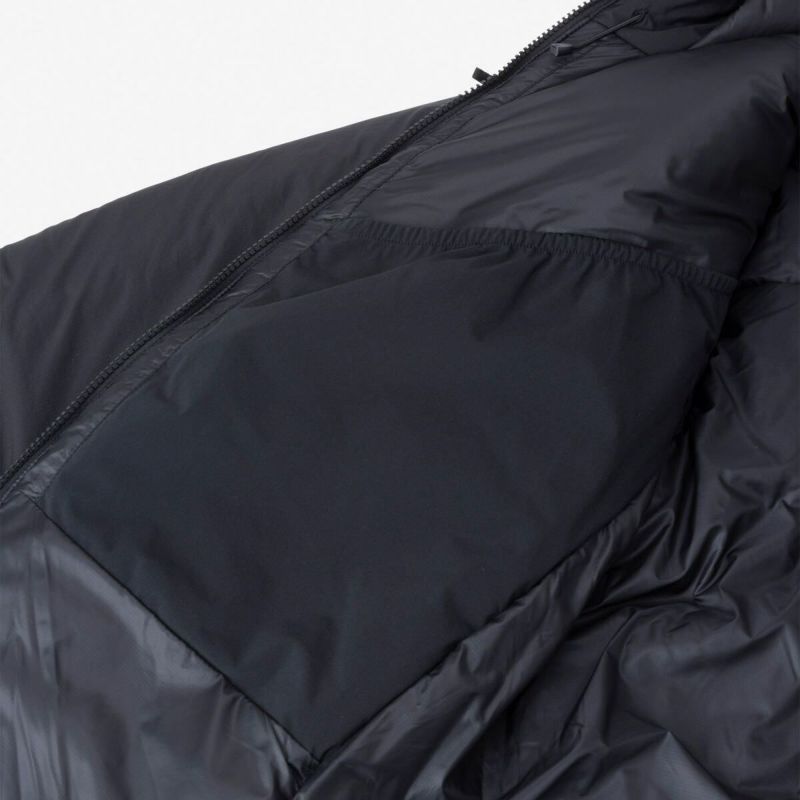 首周りにもわたを厚く封入し、半袖シャツの上から羽織っても身体を温められる保温力を備えています。