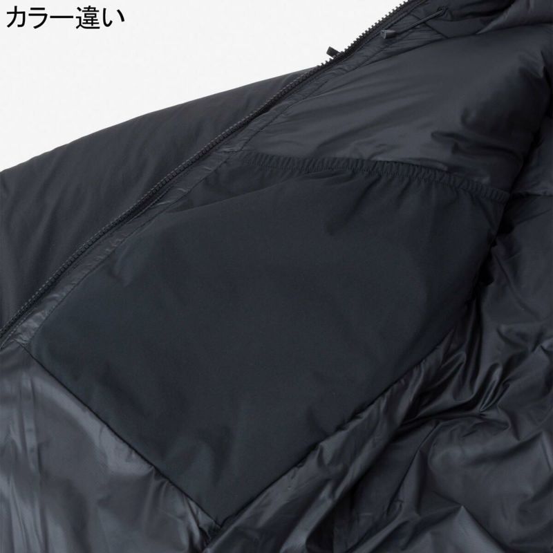 首周りにもわたを厚く封入し、半袖シャツの上から羽織っても身体を温められる保温力を備えています。