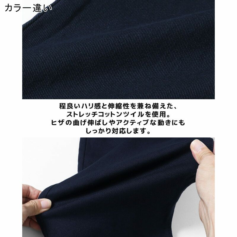 程良いハリ感と伸縮性を兼ね備えた、ストレッチコットンツイルを使用。