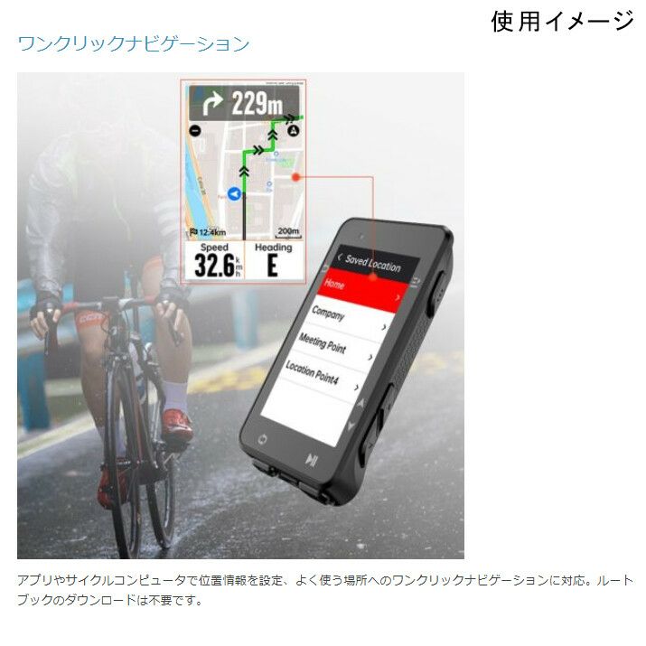アプリやサイクルコンピュータで位置情報を設定、よく使う場所へのワンクリックナビゲーションに対応。