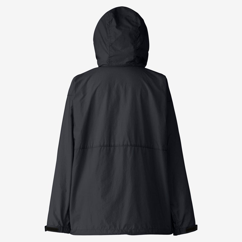 耐久はっ水加工を施し、ドローコードでフィット感を調節できるフード付きのため、多少の雨なら対応できます。
