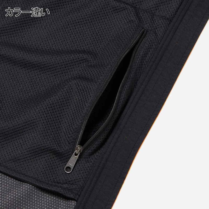 肌当たりのよいマイクロフリース素材はやわらかく軽い着心地で、裏側にはメッシュを配置しています。