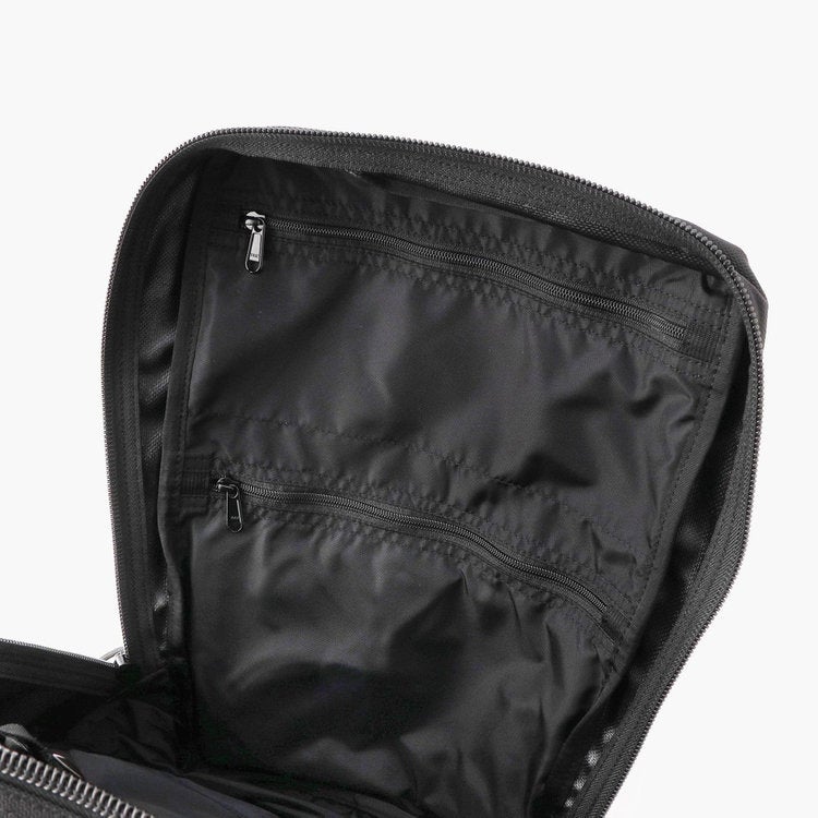 オールブラックで統一したミニマムな顔立ちと、PCや書類の収納に適したスクウェ型のフォルムがビジネススタイルにマッチ。