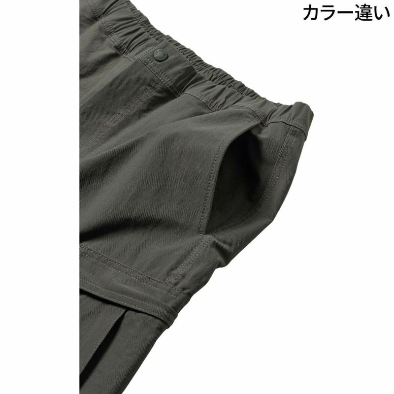 左右に大きなカーゴポケット、さらに両サイドと右ヒップにもファスナーポケットを配置し、収納力を高めています。